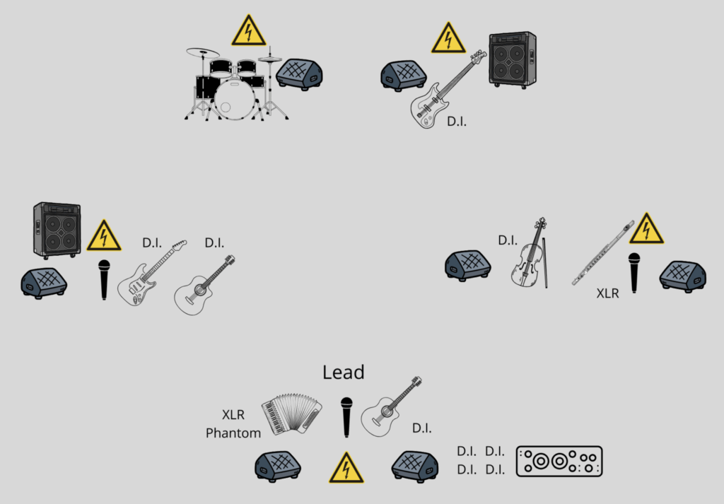 | D.I. Box: | n. 9 D.I. box Bss/Radial Attive |